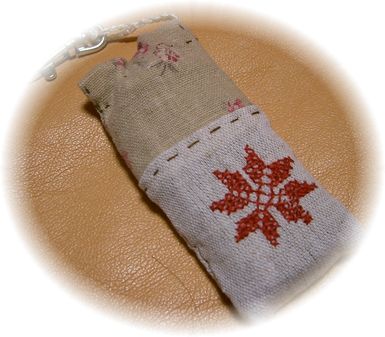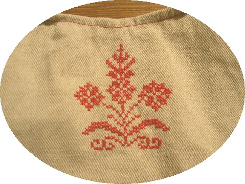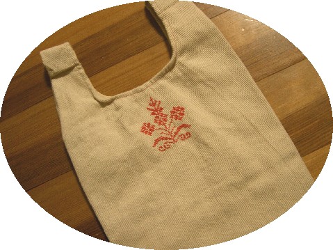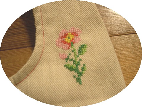 裏の持ち手部分にも小さなお花をステッチ