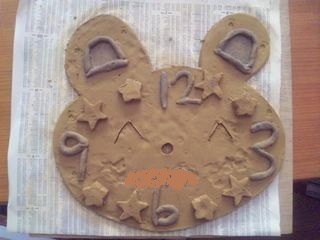 クマの形を伸ばした土に書いて、切り抜きました
