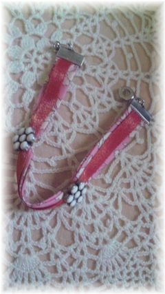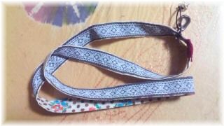 バイヤステープにリボンを合わせて、ボタンで留まっているの。